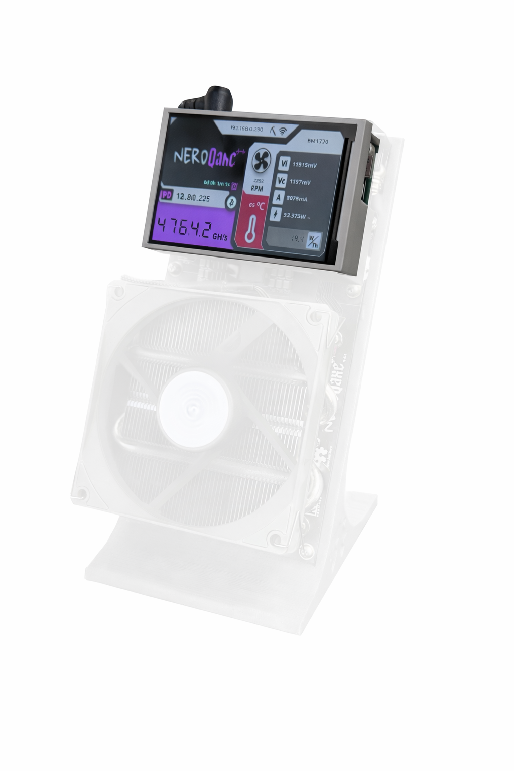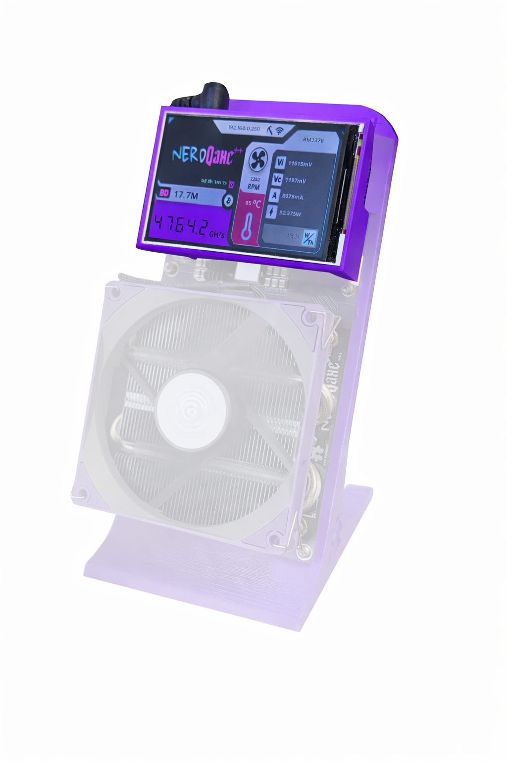 Upgrade your NerdQaxe++ or NerdQaxe++ Hydro with a large, high-visibility screen designed for instant clarity and control. Enjoy crisp stats, easier monitoring, and a cleaner premium look—perfect for quick checks at a glance or showcasing your setup. Simple to install, built to match the NerdQaxe++ aesthetic, and a must-have upgrade for serious miners who like their data big and bold.
